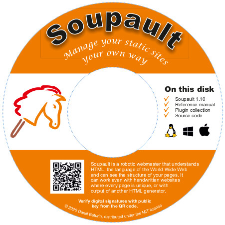 I have also prepared an ISO image that includes soupault 1.10 release, source code bundled with all its dependencies, a copy of the reference manual, and a collection of plugins.